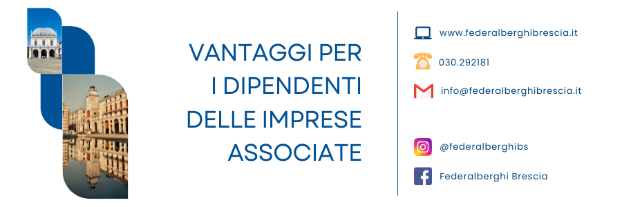 30 Gennaio 2026Per tutti i dipendenti delle imprese associate a Federalberghi Brescia, sono a disposizione dei vantaggi esclusivi. Vieni a scoprirli nell’area riservata.